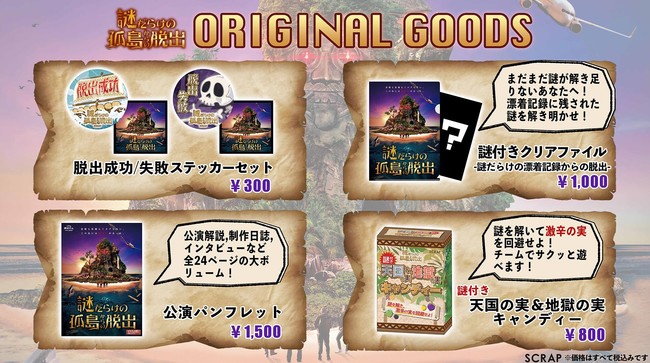 ※東京ミステリーサーカス1F、およびSCRAP GOODS SHOP(ECサイト)にて販売いたします。「謎付き 天国の実&地獄の実キャンディー」に限り、東京ミステリーサーカス1Fのみでの販売となります。