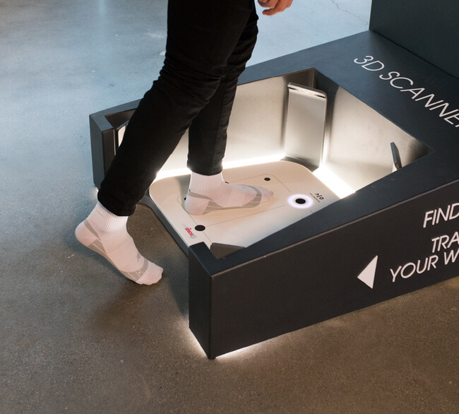 足の踵から爪先までの長さ、幅、土踏まずの高さ、左右差など360°からあなたの足の特徴を見出します。計測データからスタッフがお客様ひとりひとりの足と目的に合うフィットしたシューズをご提案します。