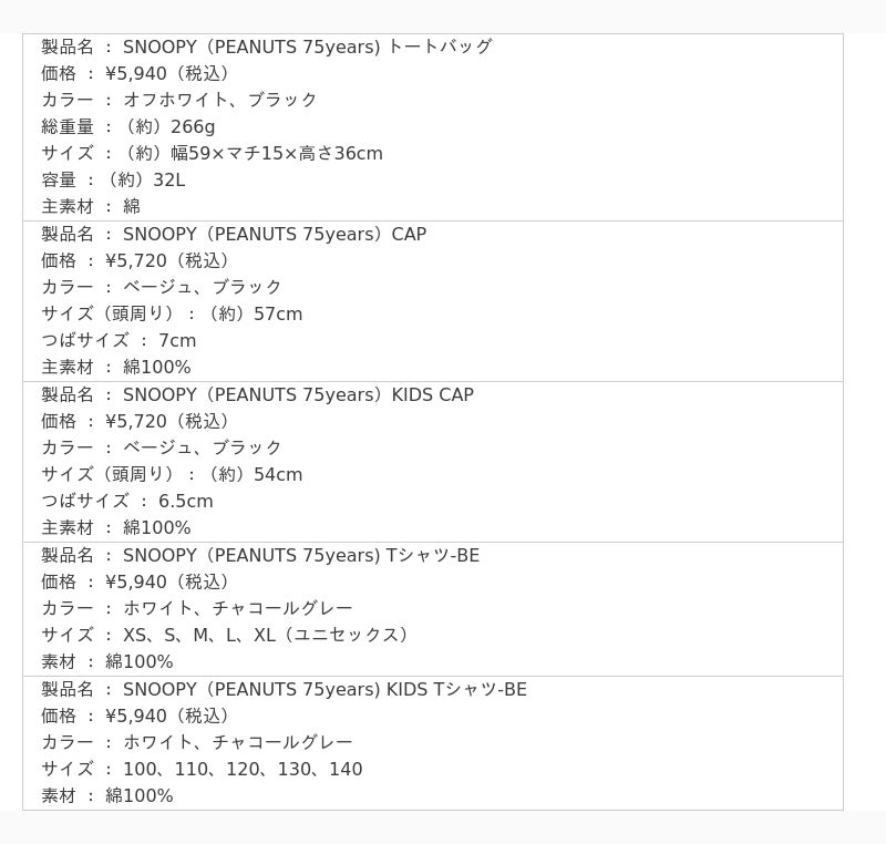 「SNOOPY(PEANUTS 75years)」アニバーサリーデザインシリーズ!親子でお揃いコーデできるアパレルなど普段使いにも大活躍のアイテム5種 新発売!