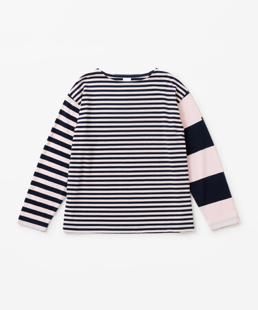 古くから続くニット・縫製業の産地・新潟県加茂市駅前商店街のファクトリーブランドとのコラボレーションアイテム。ランダムボーダーに新鮮な配色で他にはないデザインに仕上げました。