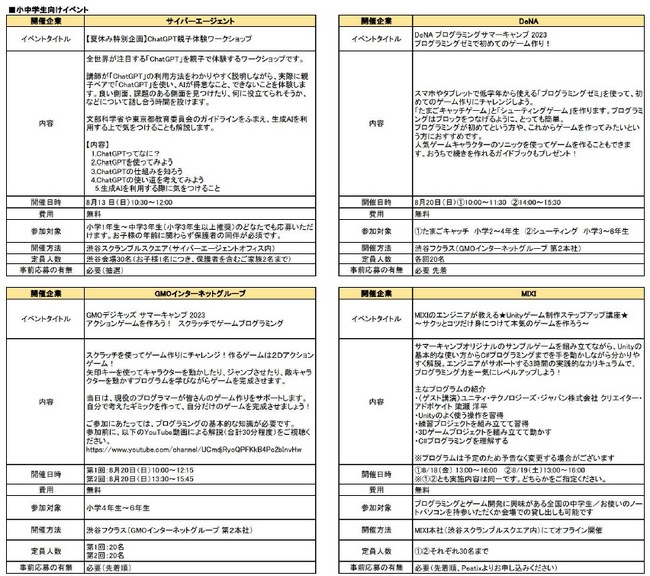 Kids VALLEY参画5社の東急・サイバーエージェント・DeNA・GMOインターネットグループ・MIXIが、今年も夏休み期間に小中学生向けプログラミングイベントを開催!