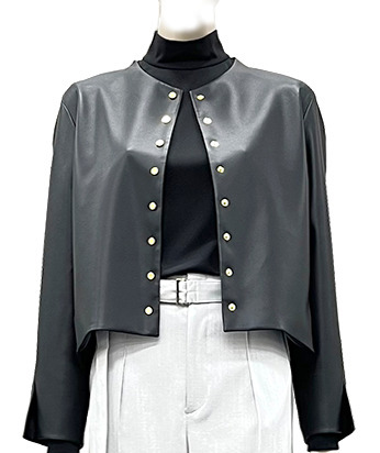 新感覚の、柔らかなフェイクレザーの質感を活かし、カーディガンのような軽い着心地のジャケットをつくりました。