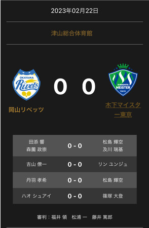 ノジマTリーグ 2022-2023シーズン 公式戦 2月22日開催 岡山リベッツ vs 木下マイスター東京 オーダー発表