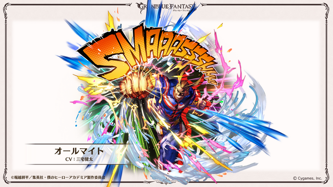 ゲームの企画・開発・運営事業を展開する株式会社Cygames(以下サイゲームス、本社:東京都渋谷区、代表取締役社長:渡邊耕一)は、サイゲームスの子会社である、デザイン制作・ゲーム企画事業を展開する株式会社CyDesignation(以下、サイデザイネイション、本社:東京都渋谷区、代表取締役社長:皆葉英夫)との共同制作によるソーシャルゲーム『グランブルーファンタジー』と、TVアニメ『僕のヒーローアカデミア』とのコラボレーションイベントの開催が決定したことをお知らせします。