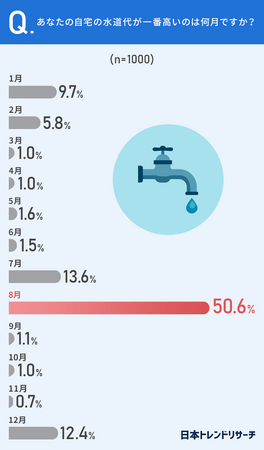 まずは、自宅の水道代が一番高いのは何月か聞いてみました。