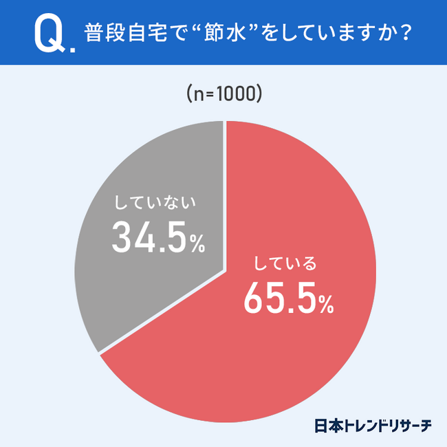「普段節水をしている」と回答したのは、半数以上の65.5%でした。