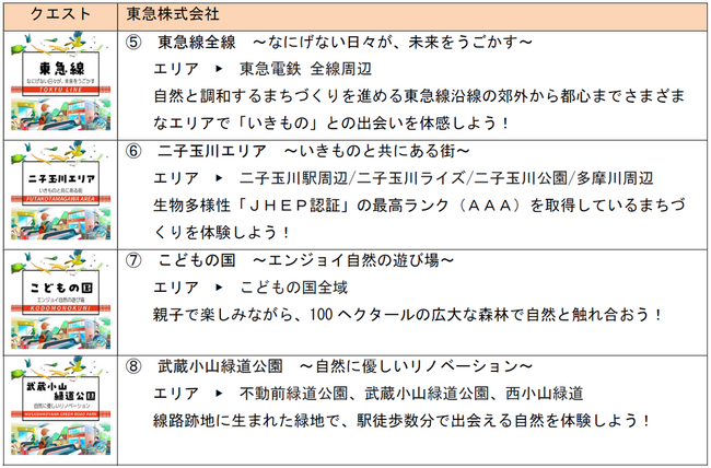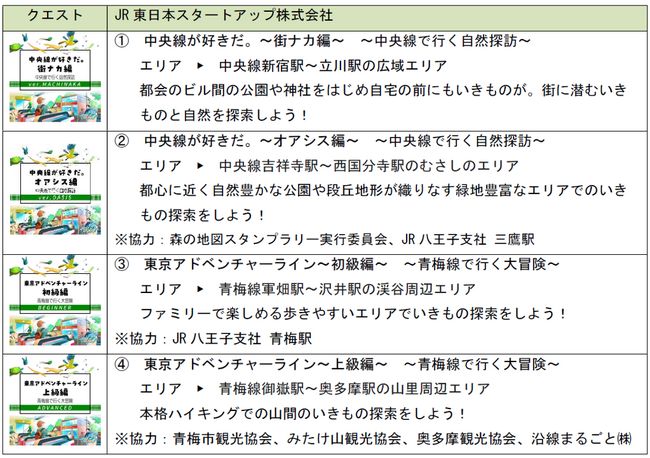 「駅からはじまるいきもの探し いきものGO」の開催期間中に配信されるクエスト一覧は下記の通りです。
