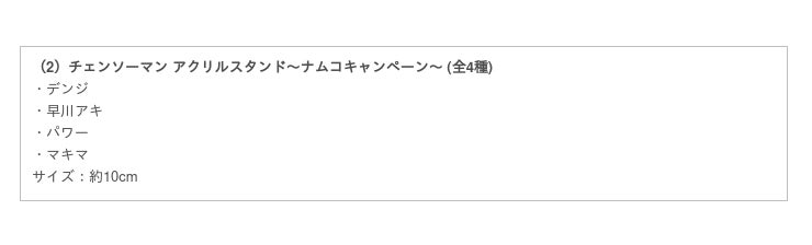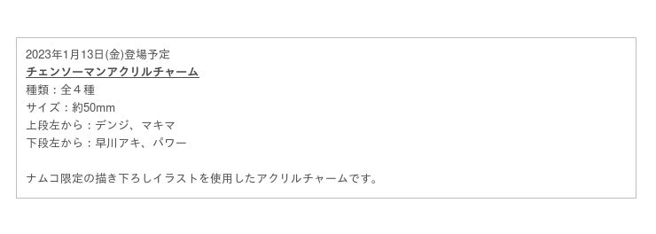 『チェンソーマン』のナムコ限定景品が、キャンペーンに合わせ登場します。