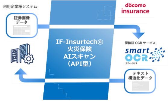 また解析結果については、これまで23年に渡ってドコモ・インシュアランスが蓄積してきた保険販売のノウハウをシステムにインプリメントすることで保険会社毎の証券の表記方法の違いを吸収し、共通コードでの応答を実現しておりますので、利用されるお客さまは保険会社毎の違いを意識する必要がない点が大きな特徴です。これにより、保険会社の代理店システムやWeb申込システムとの連携が可能となり、既存のUI/業務の中に本サービスを組み込んで頂くことが可能となりました。