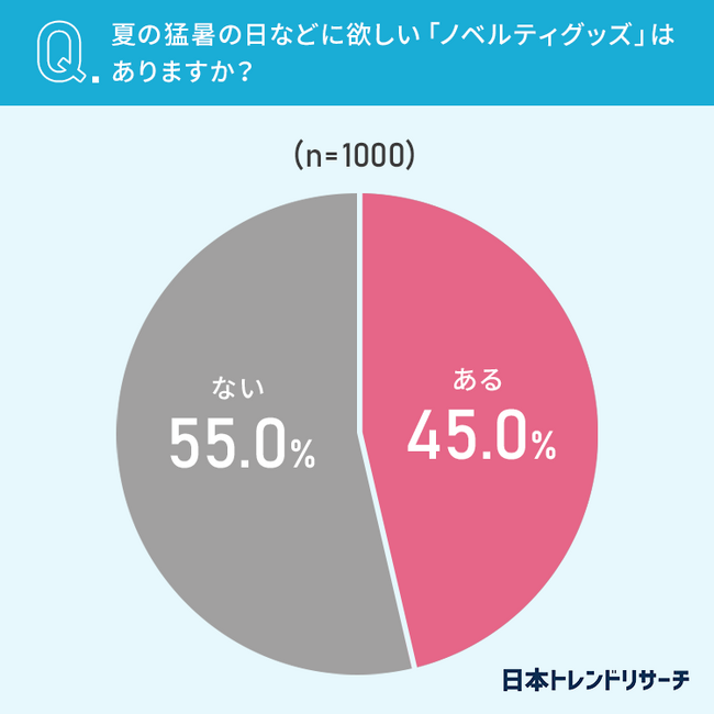 45%とおよそ半数近くの方が、夏の猛暑の日に欲しいノベルティグッズが「ある」と回答しています。