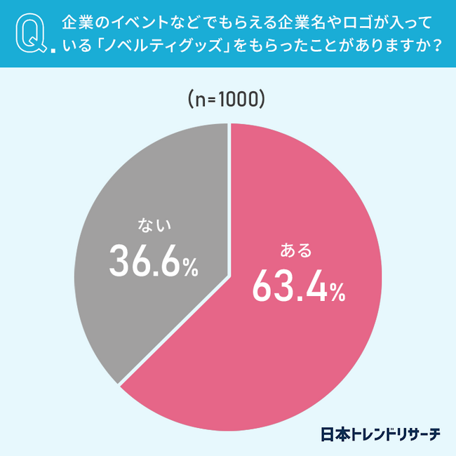 ■63.4%が、企業名やロゴが入っている「ノベルティグッズ」をもらったことがある