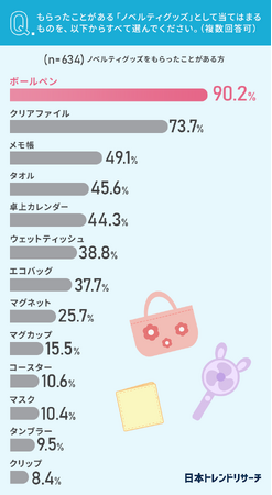 さらに、もらったことがある「ノベルティグッズ」として当てはまるものを選んでもらいました。