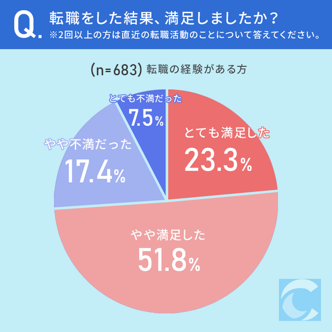 また、転職経験のある75.1%の方が、転職活動の結果「満足した」と回答しています。
