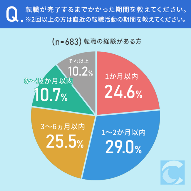 続いて、転職が完了するまでかかった期間を調査しました。