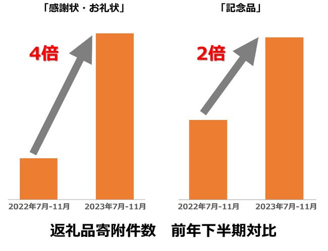 「ふるなび」上で2023年下半期の寄附件数が前年同期比で大幅に増えている「注目の返礼品」をカテゴリー別にご紹介します!中には、前年同期比で4倍の返礼品も!