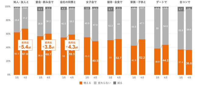 ■「知人・友人と」「宴会・飲み会で」「会社の同僚と」などのシーンが増える傾向に