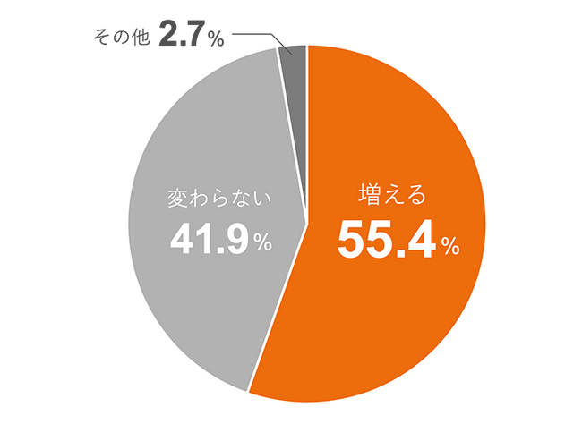 5類移行後について半数以上のユーザーが、外食機会が「増える」と回答