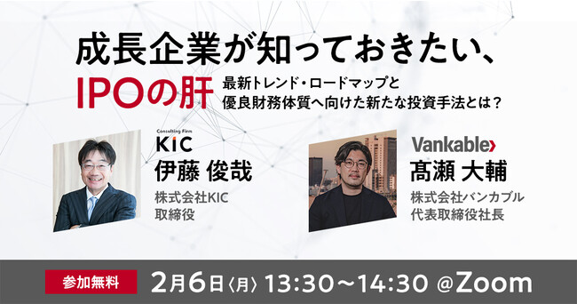 バンカブル主催 無料オンラインセミナー「成長企業が知っておきたい、IPOの肝 〜最新トレンド・ロードマップと優良財務体質へ向けた新たな投資手法とは?〜」