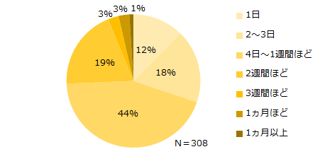 【図3】現在の雇用形態が「派遣社員」「紹介予定派遣」「無期雇用派遣」いずれかの方に伺います。現在のお仕事への応募から内定までにかかった期間を教えてください。