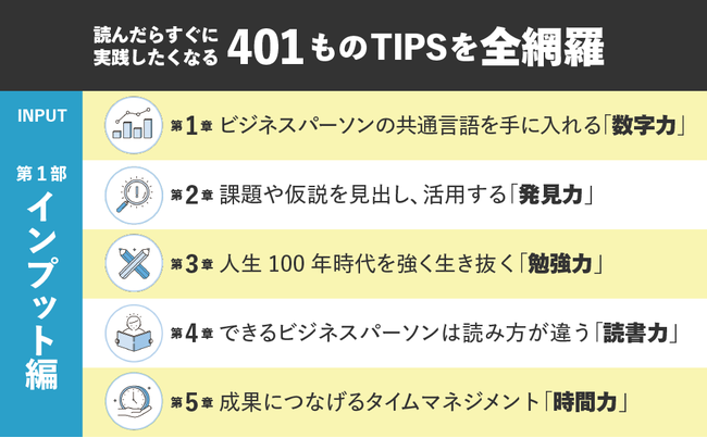 数字力、勉強力、解決力など11のスキルの401ものTIPSを全網羅!