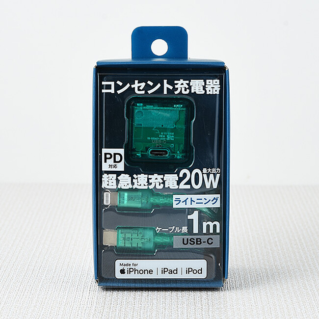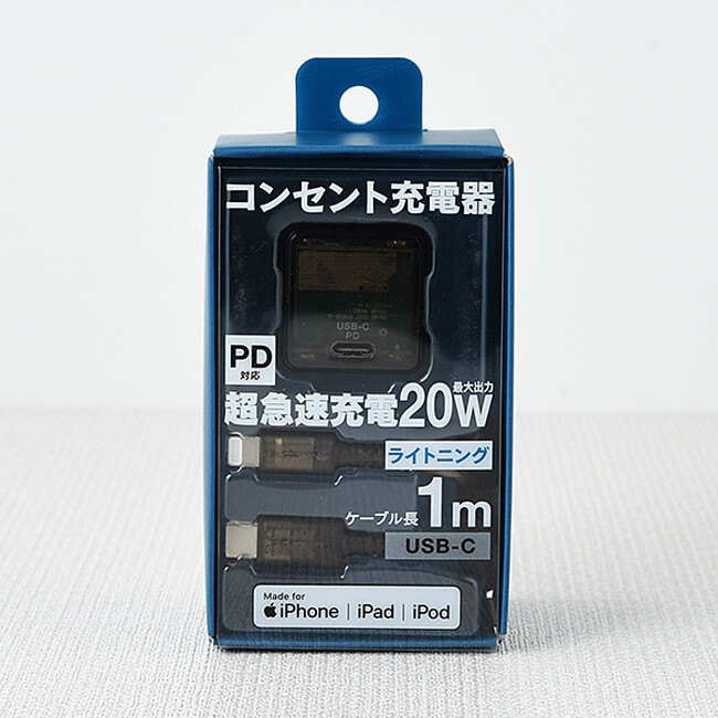 【内容】USB-C⇔Lightningケーブルが付属した、最大出力PD20Wの充電器です。