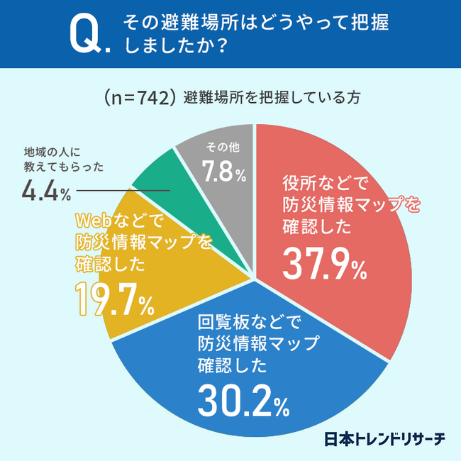 「避難場所を把握している」と回答した残りの65.6%の方に、その避難場所はどうやって把握したか聞いてみました。