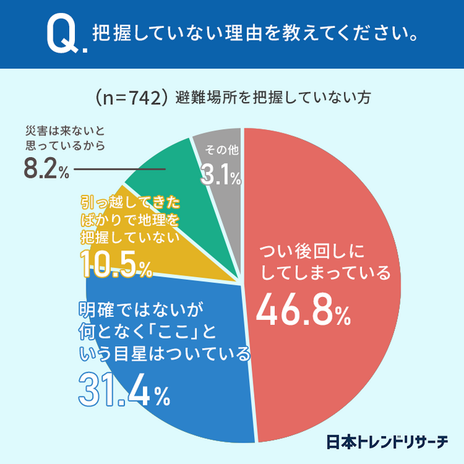 ■46.8%が「避難場所の把握を、つい後回しにしてしまっている」