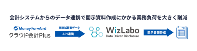 これまで、開示書類の作成に必要なデータ収集は、経理担当者が表計算ソフトなどで手作業で行うため、業務負荷が発生していました。本連携により、ユーザーは『マネーフォワード クラウド会計Plus』を通じて作成した残高試算表データを、API経由で『WizLabo』に連携し、自動で取り込むことで開示書類の作成が可能になります。そのため、決算開示業務で必要とされる有価証券報告書、決算短信等の作成業務負荷を削減できるだけでなく、手作業によって発生していたミスをなくすことで、内部統制強化にも寄与します。