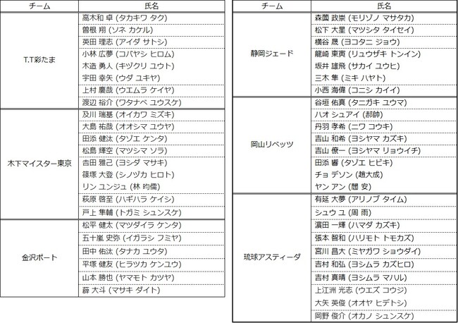 Tリーグでは、2023-2024シーズン 登録完了選手を以下の通りお知らせいたします。