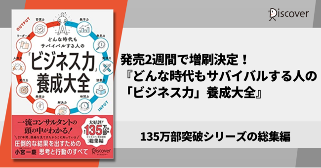 株式会社ディスカヴァー・トゥエンティワン(本社:東京都千代田区、取締役社長:谷口奈緒美)は2022年8月26日刊行の『どんな時代もサバイバルする人の「ビジネス力」養成大全』(小宮一慶・著)を増刷しました。