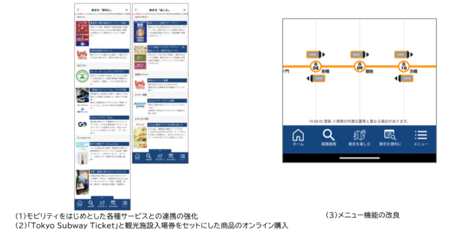 東京地下鉄株式会社(本社:東京都台東区、代表取締役社長:山村 明義、以下「東京メトロ」)は9月30日(金)、東京における大都市型MaaS(Mobility as a Service)の取組み「my! 東京MaaS」の一環として、累計で約140万回ダウンロードされている「東京メトロmy!アプリ」をバージョンアップし、モビリティをはじめとした各種サービスとの連携の強化や「Tokyo Subway Ticket」と観光施設入場券をセットにした商品のオンライン購入を実現するとともに、「メニュー」機能の改良等を行います。