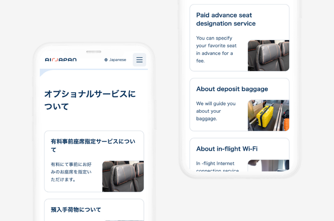 日・英の言語対応に加え、就航先地域のユーザーに快適に利用してもらえるよう、就航先言語にも対応することを想定して作成しています。