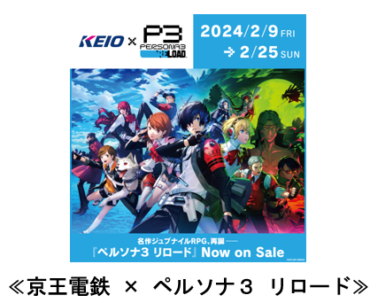 京王電鉄株式会社(本社:東京都多摩市、代表取締役社長:都村 智史、以下:当社)は、株式会社アトラス(本社:東京都品川区、代表取締役社長:大橋 修、以下:アトラス)が展開する、人気学園ジュブナイルRPG「ペルソナ」シリーズ最新作『ペルソナ3 リロード』の発売を記念したコラボレーション企画を、「京王電鉄 × ペルソナ3 リロード(以下、当企画)」として2月9日(金)から2月25日(日)まで実施します。