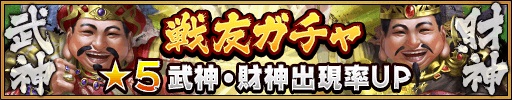 ▼戦友ガチャで最高レアリティの「武神」「財神」出現率アップ