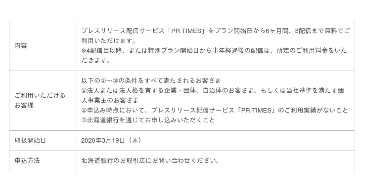 ・6ヶ月間に3回まで無料でプレスリリース配信できる特別プランを、北海道銀行の取引先へ提供開始