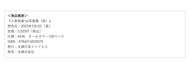 2023年春には、小泉本人が登壇する写真集発売記念イベントの開催も決定。