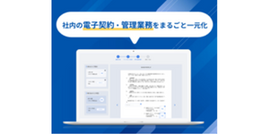 クラウド型の電子契約サービス。紙の契約書と電子契約書の一元管理、他社から受領したデータを自動で取り込み、ワークフローなどの高度な機能をカスタマイズなしで提供、などが特長です。