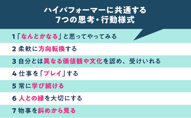 「ハイパフォーマー分析」で見えてきた、ハイパフォーマーの思考・行動様式を7つ紹介していきます。
