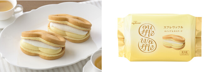 ◆スフレワッフル(ガーナ):「ガーナブラック」入りホイップクリームと「ガーナミルク」・「ガーナブラック」入りカスタードをワッフル生地でサンド。