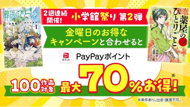 \12/22限定!100作品が対象/『葬送のフリーレン』『薬屋のひとりごと〜猫猫の後宮謎解き手帳〜』など小学館の男性向けマンガが最大70%ポイント還元!
