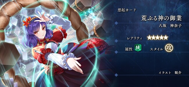 イベントで獲得できる想起カード『荒ぶる神の御業』は、御柱を発射するアクティブスキル『オンバシラキャノン』を持っています。
