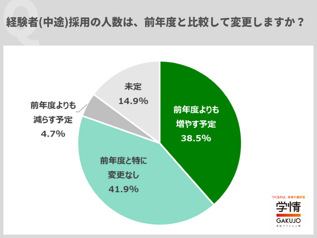 生産年齢人口の減少や雇用の流動化への対応、DXを推進するデジタル人材の確保などを目的に、経験者(中途)採用を増やす動きが加速しています。今年度の、企業の採用計画について調査しました。