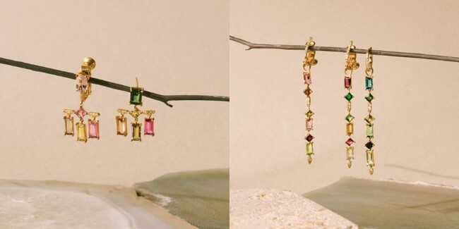 絢爛な輝きを放つ、色とりどりのマルチトルマリンの連ねたシャンデリアピアスやエタニティリングをプレゼント。詳しくは公式instagramをご覧ください。