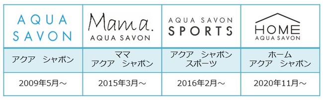 「アクア シャボン」シリーズは“香りで毎日の生活が楽しくなる”を提案する “泡(シャボン)”をテーマにしたライフスタイル化粧品ブランドです。2022年5月で14年目に入り、累計出荷本数760万本(※9)とヒット中。性別や年齢を問わず、爽やかで清潔感のある香りを好む方にお使いいただける「アクア シャボン」、子どもを持つママ向けの「ママ アクア シャボン」、あらゆるアクティブシーンにフィットする「アクア シャボン スポーツ」、おうちで愉しむ香りを提案する「ホーム アクア シャボン」があります。朝のお出かけ前やお化粧直しの時、汗をかいた後やくつろぎの時間も、お仕事にもデートにも日常に溶け込んで、シーンに合わせて使うことができる商品を展開しております。