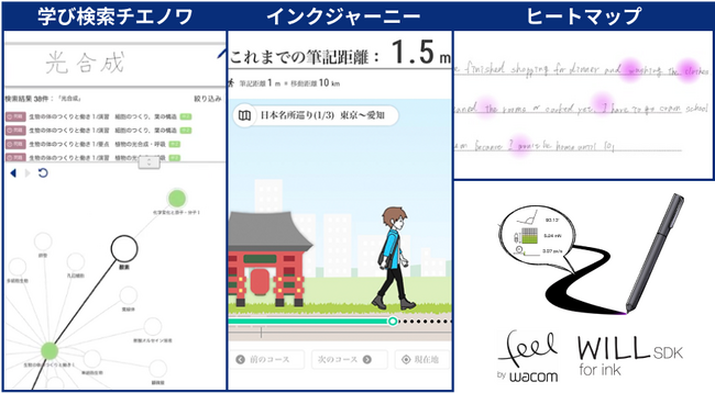 ワコムのWILL(TM)テクノロジー(※6)によるデジタルインク情報を活用した筆記量の振り返り機能(インクジャーニー)や、記述に時間をかけた箇所がわかるリプレイ・ヒートマップ機能など、デジタルならではの新しい「書く学び」を実現しています。
