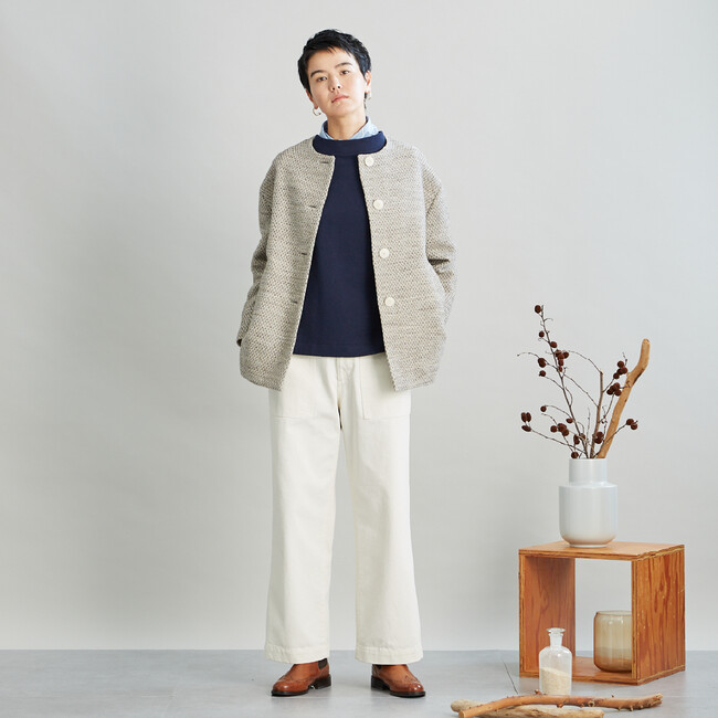 素材ではジャガード編みやダブルフェイス、風通織といった織りや編みでの重なりをシーズンの始まりから徐々に重ねて行くことでロングシーズン着れるアイテムたち。カラフルでテクニックに富んだニットに永く愛せるベーシックなボトムスなど、シプリのコレクションをぜひお楽しみください。