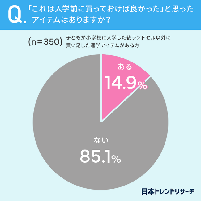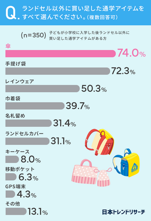 まずは子どもが小学校に入学した後、ランドセル以外に買い足した通学アイテムはあるか聞いてみました。