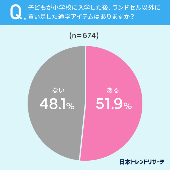 ■51.9%が、子どもが小学校に入学した後ランドセル以外に買い足した通学アイテムが「ある」