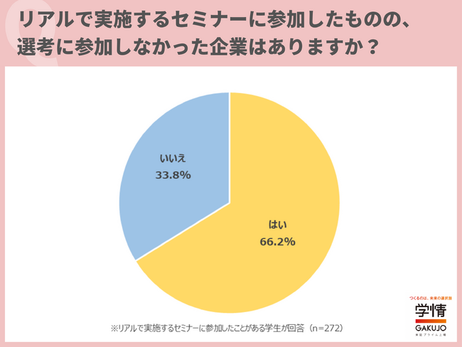 オンラインでセミナーに参加後、選考に進まなかった経験を持つ学生が9割超。リアル参加より2割多い結果に