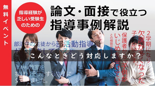 【教員採用試験】指導経験が乏しい受験生必見!無料オンラインセミナー「論文・面接で役立つ指導事例解説」を3/23(土)に開催